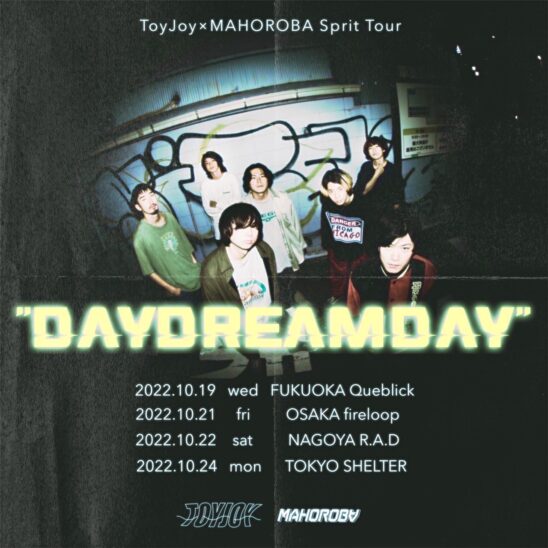 SCHEDULE 2022 10 24 Monday ToyJoy × MAHOROBA Split Tour ” DAYDREAMDAY “ OPEN 19:30 - START 20:00 Tweet ToyJoy MAHOROBA rem time rem time TICKETADV¥2500/DOOR¥3000 【発売日】 各BAND予約 Share