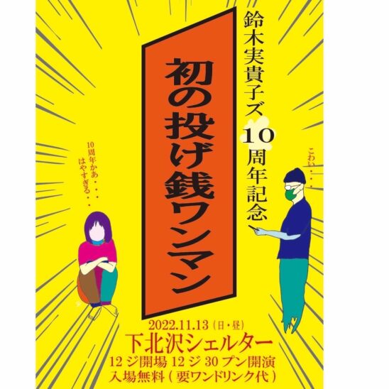 SCHEDULE 2022 11 13 Sunday DAY EVENT 鈴木実貴子ズ10周年記念 『初の投げ銭ワンマン!』 OPEN 12:00 - START 12:30 Tweet 鈴木実貴子ズ TICKETADV / DOOR FREE ※1D別 Share