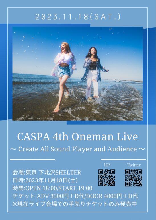 SCHEDULE 2023 11 18 Saturday CASPA 4th Oneman Live Create All Sound Player and Audience OPEN 18:00 - START 19:00 Tweet CASPA TICKETADV¥3500 / DOOR¥4000 【発売日】 BAND手売り Share