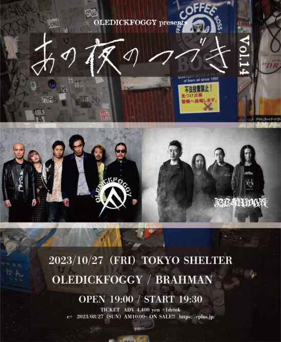 SCHEDULE 2023 10 27 Friday OLEDICKFOGGY presents「あの夜のつづき Vol.14」 OPEN 19:00 - START 19:30 Tweet OLEDICKFOGGY BRAHMAN TICKETADV¥4400 / DOOR¥未定 【発売日】 THANK YOU!! SOLD OUT!! Share