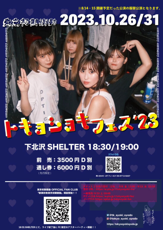 SCHEDULE 2023 10 31 Tuesday トキョショキフェス’23 OPEN 18:30 - START 19:00 Tweet 東京初期衝動 TICKETADV¥3500 【発売日】 9/23〜チケットぴあ・e+ Share