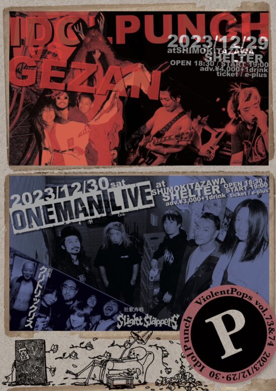 SCHEDULE 2023 12 30 Saturday IdolPunch presents ViolentPops vol.74 『IdolPunch ONE MAN LIVE』 OPEN 18:30 - START 19:00 Tweet LIVE:IdolPunch 社歌斉唱:SLIGHT SLAPPERS 前説:クリトリック・リス TICKETADV¥3000 / DOOR¥未定 【発売日】 10/28 10時〜e+ https://eplus.jp/sf/detail/3984880001-P0030001 ラコスバー店頭 Share