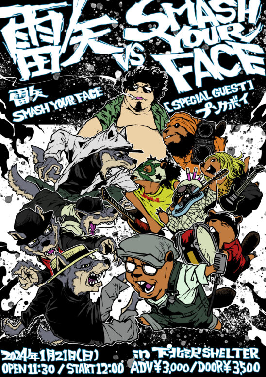 SCHEDULE 2024 01 21 Sunday DAY EVENT 雷矢 vs. SMASH YOUR FACE OPEN 11:30 - START 12:00 Tweet 雷矢 SMASH YOUR FACE SPECIAL GUEST:プンクボイ TICKETADV¥3000 / DOOR¥3500 【発売日】 SHELTER予約 Share このイベントの予約は締めきりました。