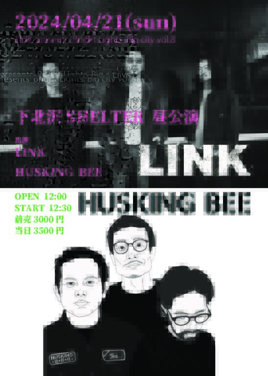 SCHEDULE 2024 04 21 Sunday DAY EVENT LINK presents 「Bright Lights, Big city vol.8」 OPEN 12:00 - START 12:30 Tweet LINK HUSKING BEE TICKETADV¥3000 / DOOR¥3500 【発売日】 2/3〜e+ https://eplus.jp/sf/detail/4040570001-P0030001 Share