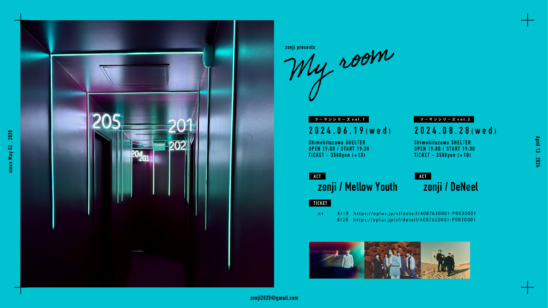 SCHEDULE 2024 06 19 Wednesday zonji presents ”My room” vol.2 OPEN 19:00 - START 19:30 Tweet zonji Mellow Youth TICKETADV¥3500 / DOOR未定 【発売日】 2024年4月15日21:00~イープラス:https://eplus.jp/sf/detail/4087630001-P0030001 Share