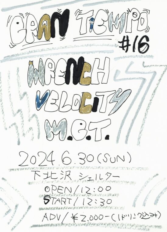 SCHEDULE 2024 06 30 Sunday DAY EVENT GRAN TiEMPO #16 OPEN 12:00 - START 12:30 Tweet M.G.T. VELOCITY WRENCH TICKETDOOR¥2000 【発売日】 当日券のみ Share