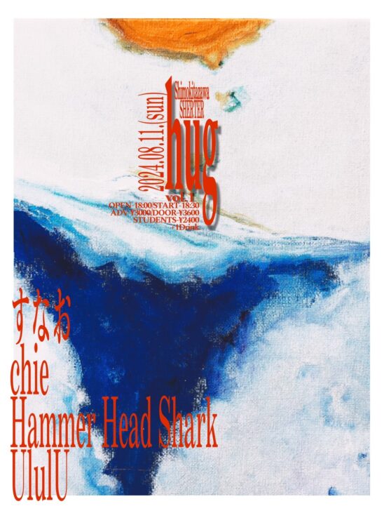 SCHEDULE 2024 08 11 Sunday “hug” OPEN 18:00 - START 18:30 Tweet すなお chie Hammer Head Shark UlulU TICKETADV¥3000 / DOOR¥3600 / STUDENTS¥2400 【発売日】 BAND予約 Share