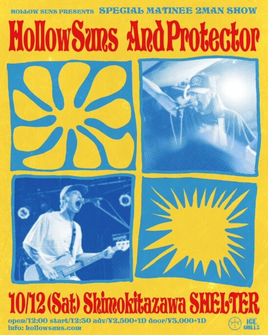 SCHEDULE 2024 10 12 Saturday DAY EVENT Hollow Suns presents. “SPECIAL MATINEE 2MAN SHOW” OPEN 12:00 - START 12:30 Tweet Hollow Suns And Protector TICKETADV¥2500 / DOOR¥3000 【発売日】 8/27〜Livepocket https://t.livepocket.jp/e/y83z4 Share