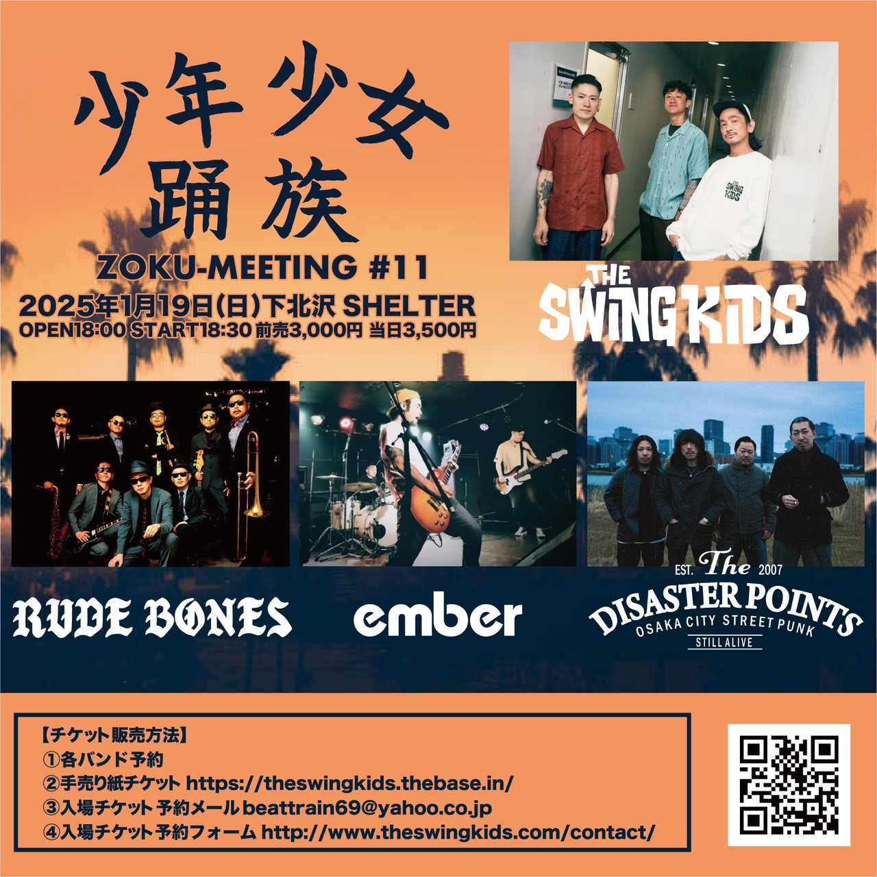 SCHEDULE 2025 01 19 Sunday “少年少女踊族 #11“ OPEN 18:00 - START 18:30 Tweet THE SWING KIDS RUDE BONES THE DISASTER POINTS ember TICKETADV¥3000 / DOOR¥3500 【発売日】 各BAND予約 http://www.theswingkids.com/contact/ #THE SWING KIDS#RUDE BONES#THE DISASTER POINTS#ember Share