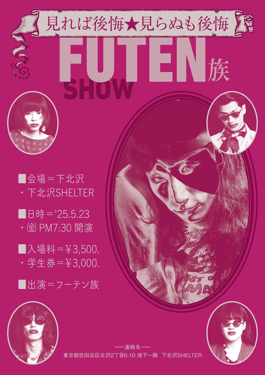 SCHEDULE 2025 05 23 Friday 「ボ!」 OPEN 19:00 - START 19:30 Tweet フーテン族 TICKETADV¥3500 / DOOR¥4000 / 22才以下 ¥3000 【発売日】 e+ #フーテン族 Share