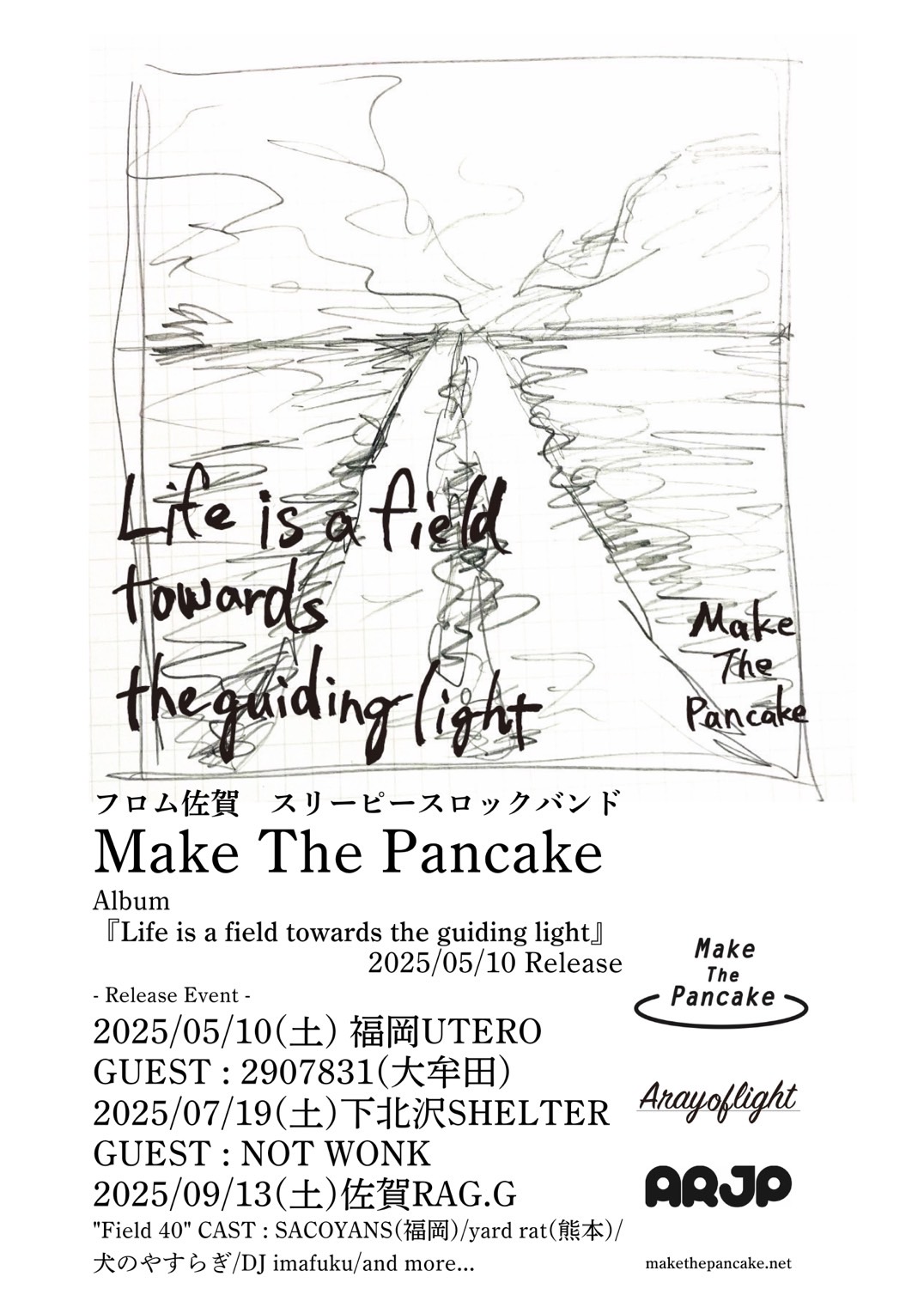 SCHEDULE 2025 07 19 Saturday Make The Pancake 2nd FULL ALBUM 『Life is a field towards the guiding light』release event OPEN 18:00 - START 18:30 Tweet Make The Pancake NOT WONK TICKETADV¥3400 / DOOR¥4400 【発売日】 3/29〜e+ #Make The Pancake#NOT WONK Share