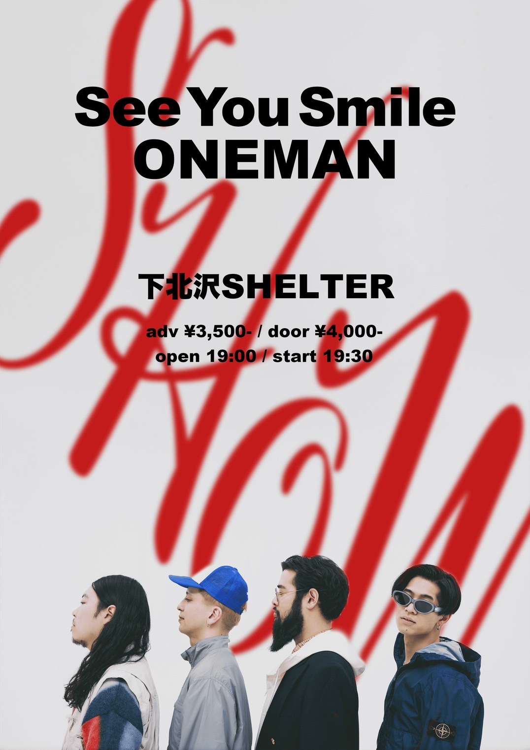 SCHEDULE 2025 06 23 Monday 【See You Smile -ONEMAN SHOW-】 OPEN 19:00 - START 19:30 Tweet See You Smile TICKETADV¥3500 / DOOR¥4000 【発売日】 4/23〜Livepocket https://t.livepocket.jp/e/xbwuz #See You Smile Share