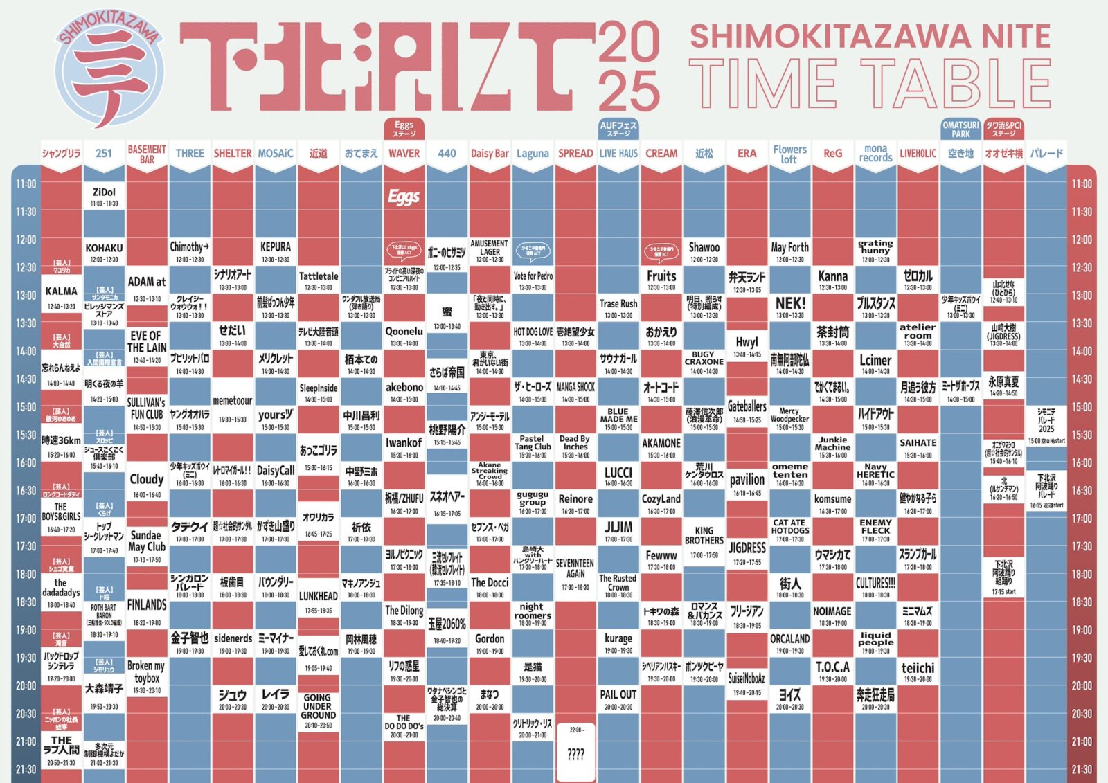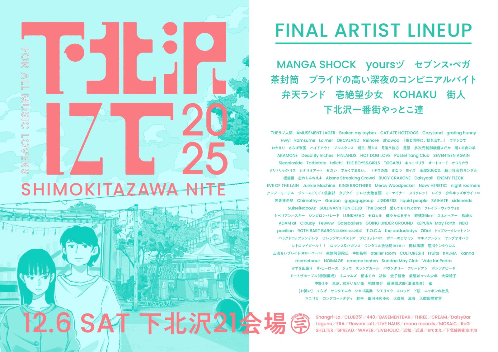 シャングリラ / CLUB251 / 440 / BASEMENTBAR / THREE / SHELTER / SPREAD / Flowers Loft / LIVE HAUS / MOSAiC / DaisyBar / Laguna / ERA / WAVER / LIVEHOLIC / mona records / CREAM / ReG / 近松 / 近道 / 下北線路街空き地 / 下北沢駅前広場