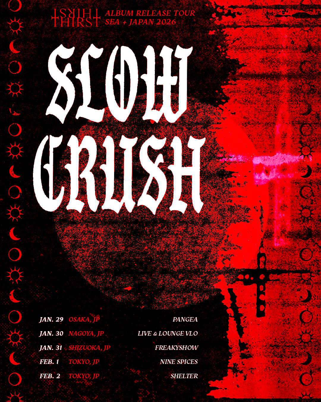 SCHEDULE 2026 02 02 Monday Nothing Feels Real presents Slow Crush Japan Tour 2026 OPEN 19:00 - START 19:30 Tweet Slow Crush (Belgium) +ゲストあり TICKETADV ¥6000 / DOOR ¥6500 チケット:https://nothingfeelsreal.square.site/ #Slow Crush Share