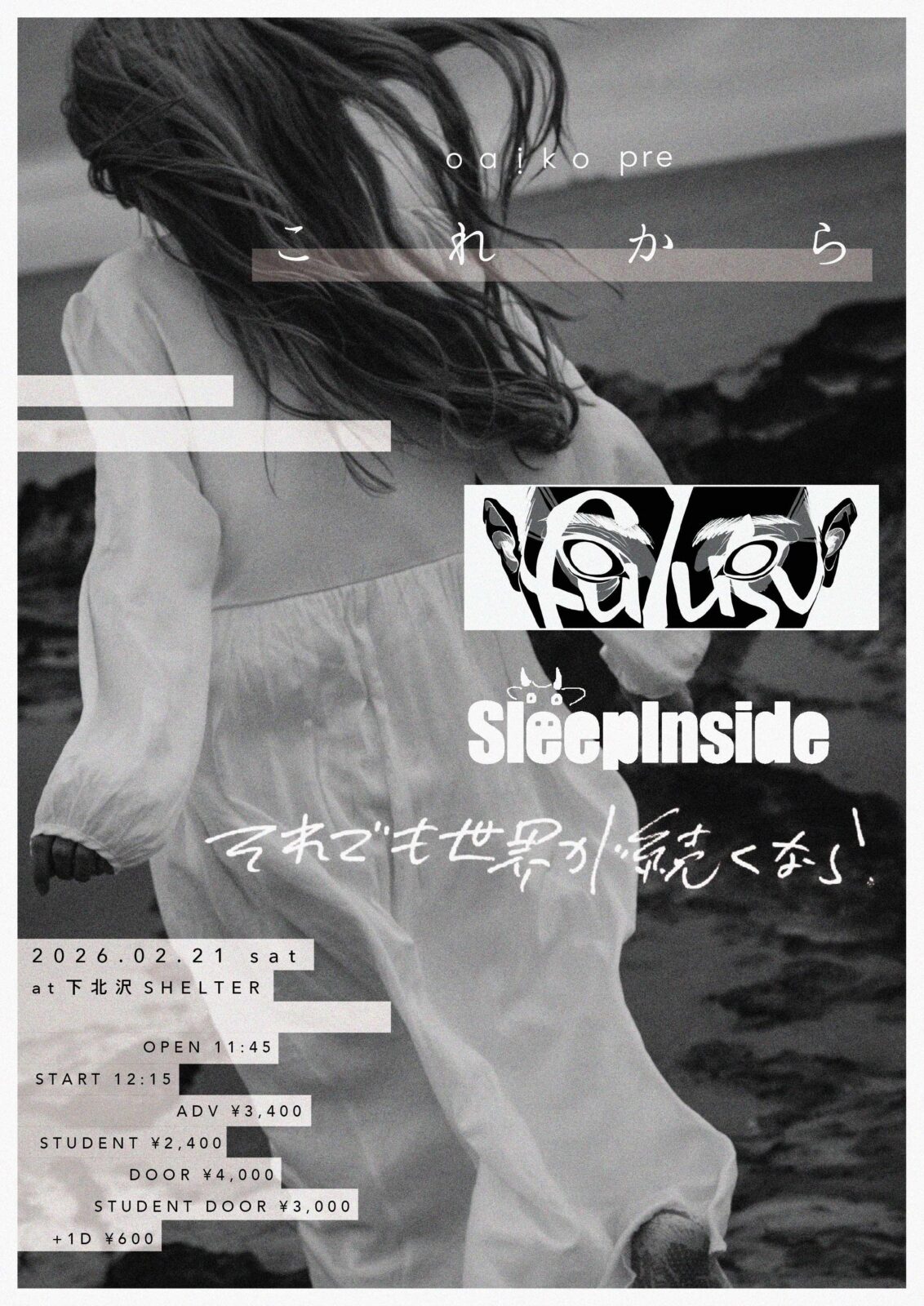 - 一般ADV ¥3400 / 学割ADV ¥2400 / 一般DOOR ¥4000 / 学割DOOR ¥3000