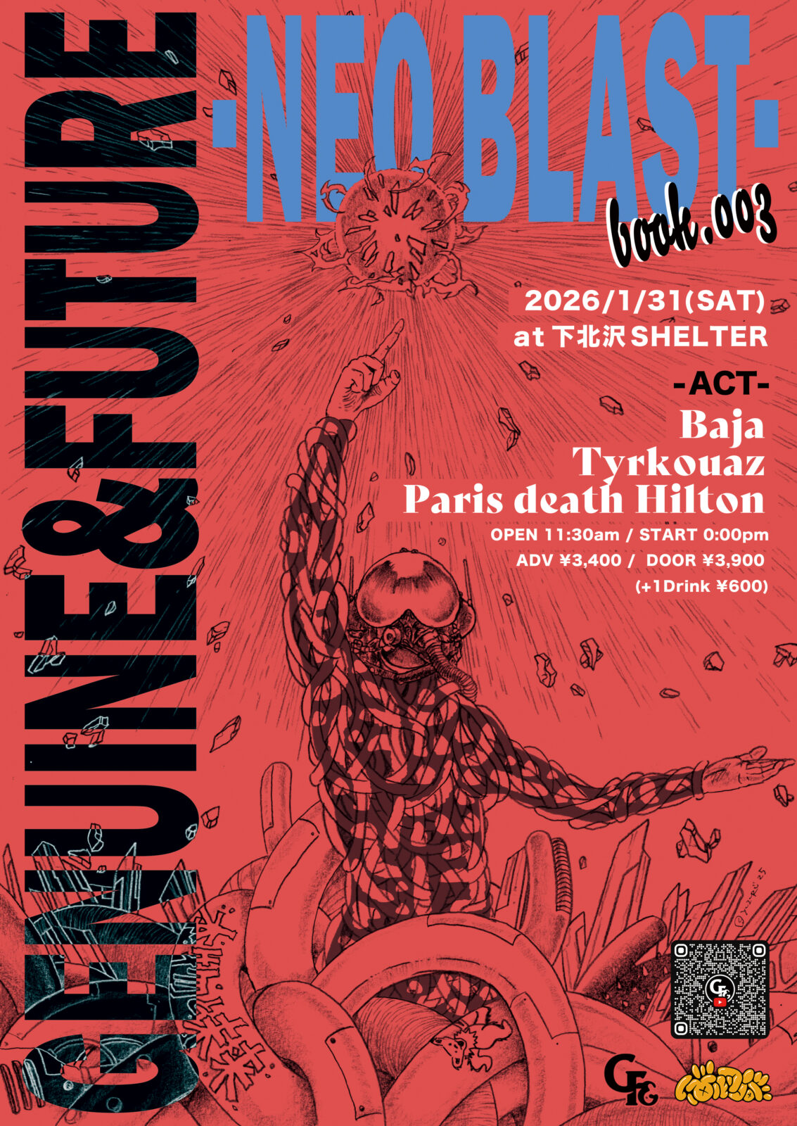 SCHEDULE 2026 01 31 Saturday DAY EVENT [GENUINE&FUTURE book.003 ~NEO BLAST~] OPEN 11:30 - START 12:00 Tweet Baja Tyrkouaz Paris death Hilton TICKETADV¥3400 / DOOR¥3900 【発売日】 11/1〜Livepocckt https://t.livepocket.jp/e/w96wh BAND予約・SHELTER予約 #Baja#Tyrkouaz#Paris death Hilton Share チケット予約