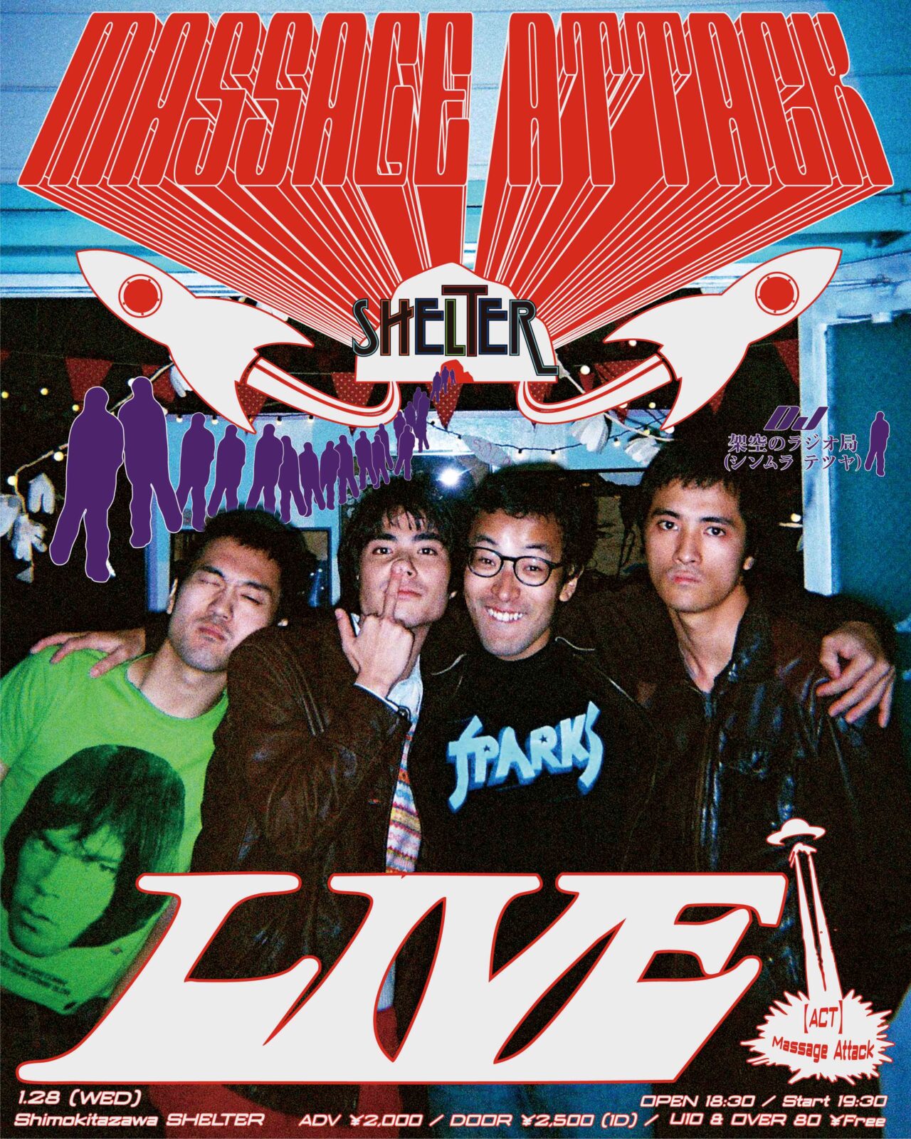 SCHEDULE 2026 01 28 Wednesday Massage Attack LIVE OPEN 18:30 - START 19:30 Tweet Massage Attack DJ: 架空のラジオ局(シンムラテツヤ) TICKETADV¥2000 / DOOR¥2500 TICKET:https://forms.gle/PAGiStPWUJcMUFDG7 #Massage Attack#架空のラジオ局 Share