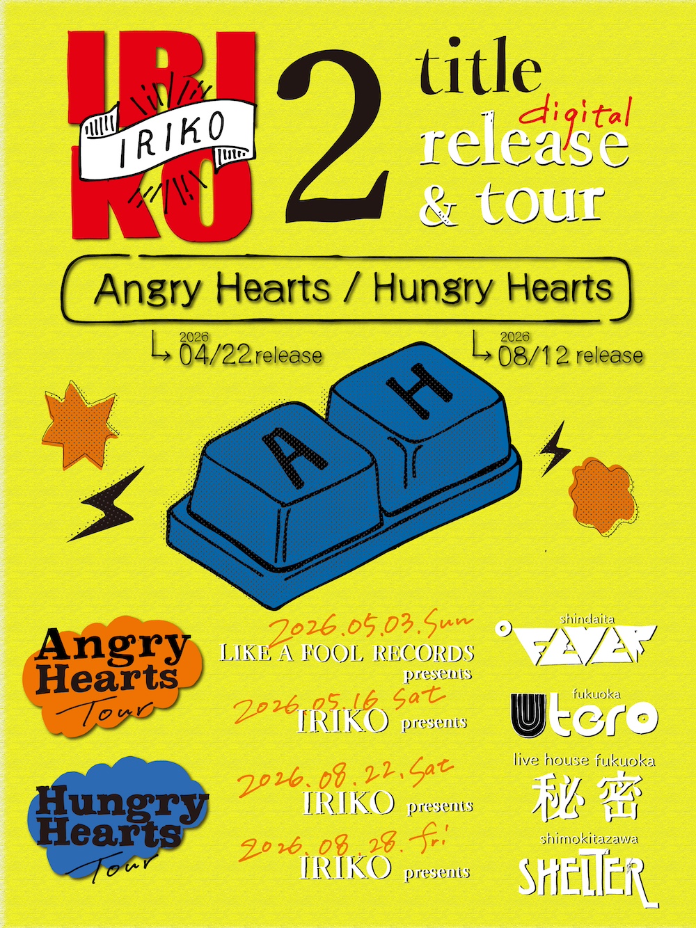 SCHEDULE 2026 08 28 Friday IRIKO〜2 title digital release & tour〜 ”Hungry Hearts tour” OPEN TBA: - START TBA: Tweet IRIKO TICKETADV/DOOR TBA #IRIKO Share