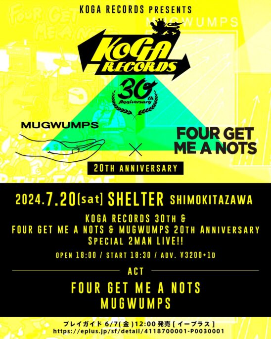 KOGA RECORDS 30th & FOUR GET ME A NOTS & MUGWUMPS 20th Anniversary Special 2MAN LIVE!!
