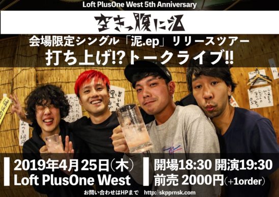 空きっ腹に酒のリリースツアーとロフトプラスワンウエストOPEN5周年を祝して、2回目のお客さん参加のトークライブ式公開打ち上げを開催!!ツアー各地の裏話から音源製作秘話まで!?いつもの打ち上げのように飲んで喰って笑って空きっ腹に酒と打ち上がりましょう!