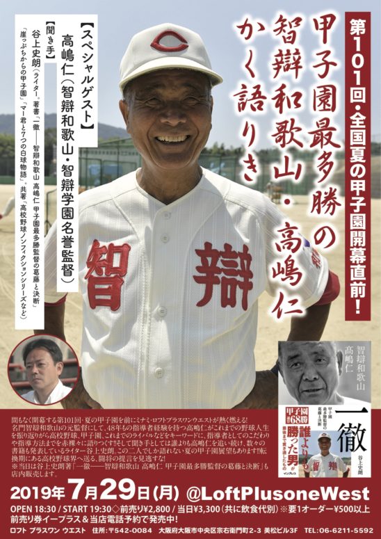 ※当日は谷上史朗著「一徹――智辯和歌山 高嶋仁 甲子園最多勝監督の葛藤と決断」も店内販売します。