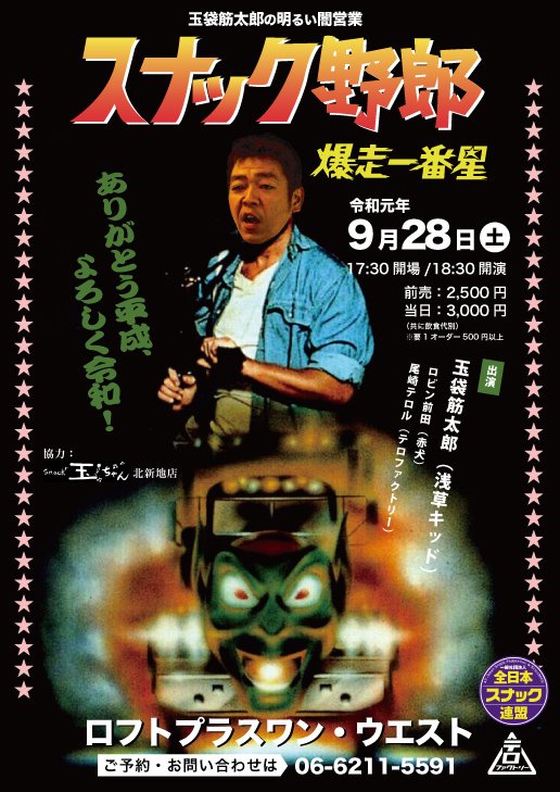 元号が「令和」に変わって早4ヵ月、全日本スナック連盟会長、浅草キッドの玉袋筋太郎さんを迎え、明るい闇営業。