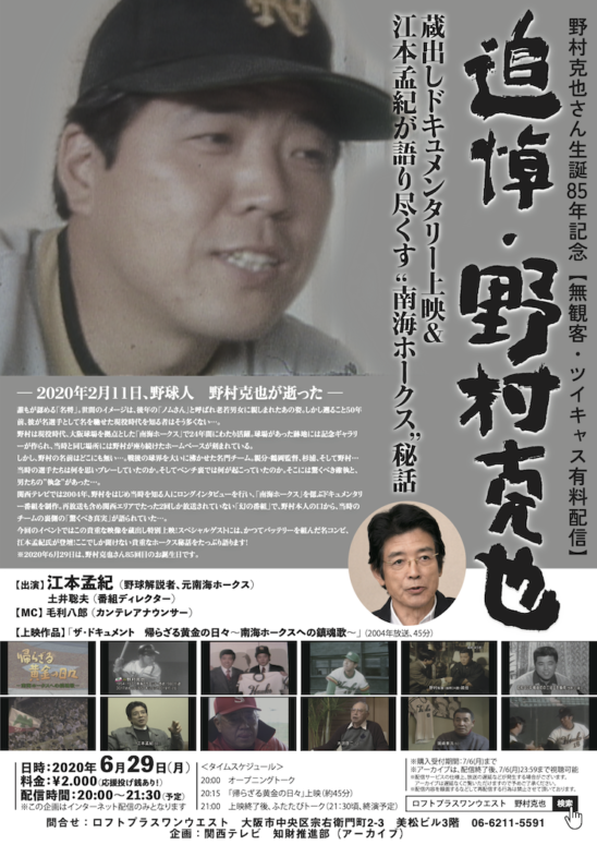 関西テレビでは2004年、野村をはじめ当時を知る人にロングインタビューを行い、「南海ホークス」を偲ぶドキュメンタリー番組を制作。再放送も含め関西エリアでたった2回しか放送されていない「幻の番組」で、野村本人の口から、当時のチームの裏側の「驚くべき真実」が語られていた…。