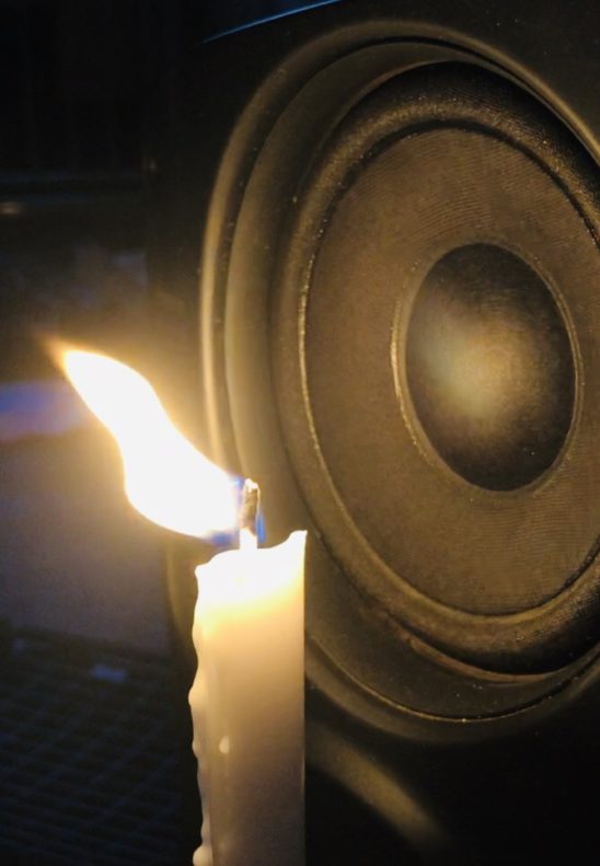 スピーカーから出る屁の爆音振動で揺れるロウ