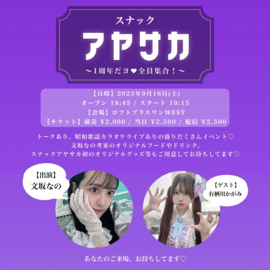 観覧チケット:前売¥2,000 / 当日¥2,500(共に要1オーダー¥500以上)