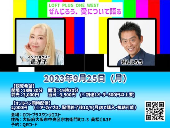 ぜんじろう、55歳にして初めてド正面から『愛』についてじっくり語る夜。
