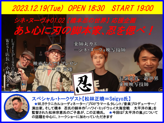 そしてこのトークショーは、来年の1月2日(火)より九条シネ・
