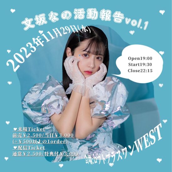 観覧チケット:前売¥2,500/当日¥3,000(共に+1オーダー必須)