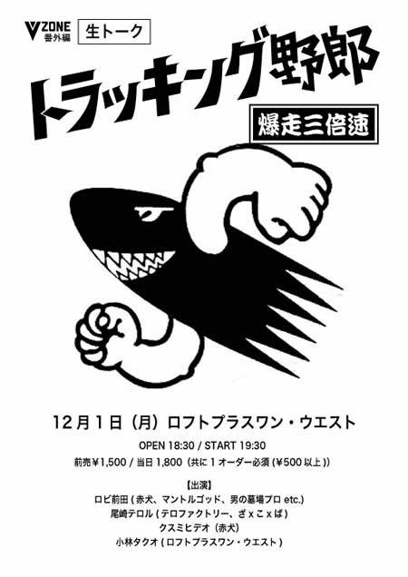 【出演】 ロビ前田(赤犬、マントルゴッド、男の墓場プロ etc.) 尾崎テロル(テロファクトリー、ざxこxば) クスミヒデオ(赤犬) 小林タクオ(ロフトプラスワン・ウエスト)