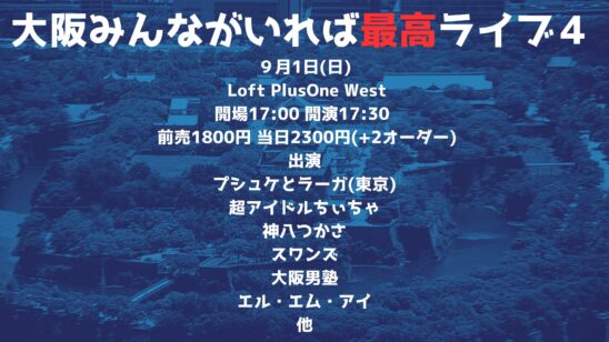 前売¥1,800当日¥2,300(共に2オーダー必須)