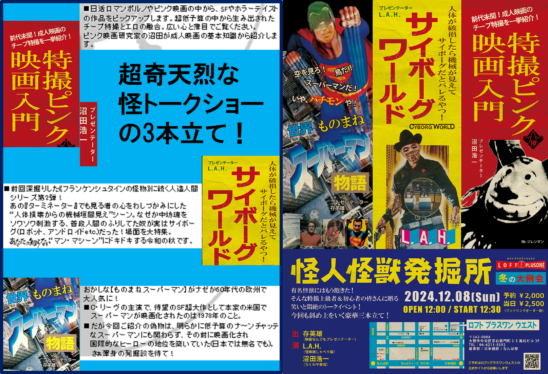 ◆怪人怪獣発掘所は、特撮に関するトークイベントです。昭和の文