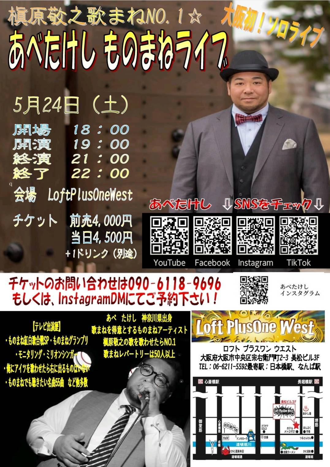 槇原敬之歌まねNo.1を称するあべたけしが大阪で初めて開催するソロライブ!