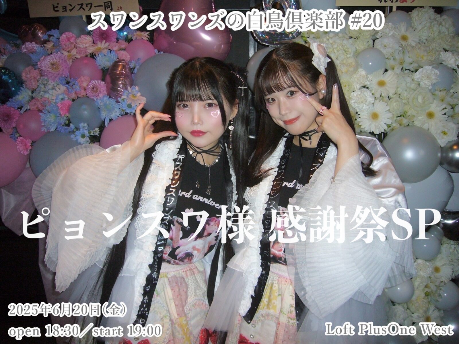 SCHEDULE 2025 06 20 Friday 「スワンスワンズの白鳥倶楽部#20 〜ピョンスワ様感謝祭SP〜」 OPEN 18:30 - START 19:00 Tweet 【出演】 スワンスワンズ TICKET《会場チケット》 前売¥2,000 (+1オーダー) 会場チケットはTIGETにて受付中 《配信チケット》¥1,500 配信チケットはキャスマーケットにて発売中 ※アーカイブはイベント終了後2週間視聴可(繰り返し大丈夫です) Share