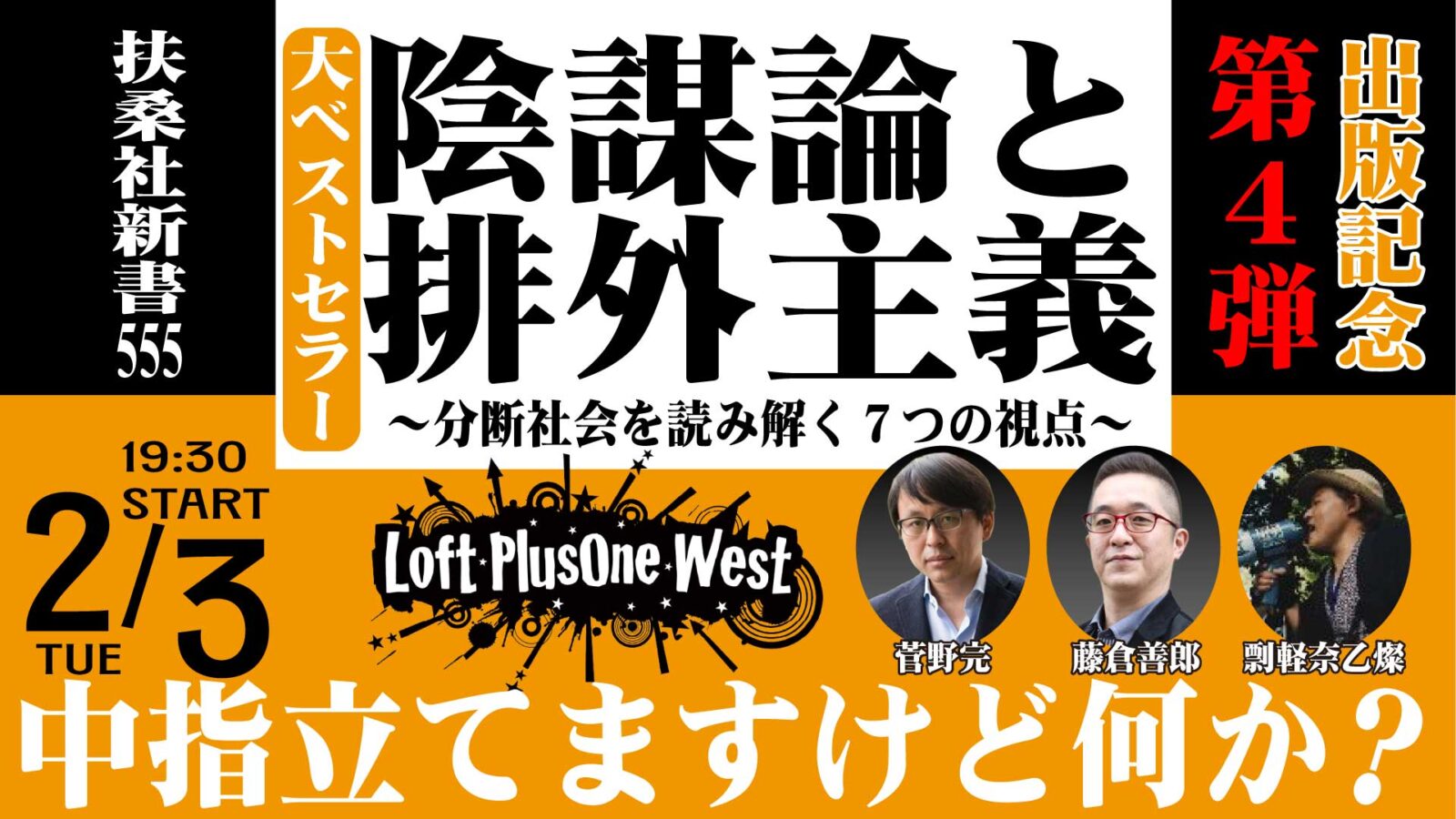 排外主義批判とサブカル・ウォッチのコラボで大ベストセラーとなった扶桑社新書『陰謀論と排外主義』の執筆陣、菅野・藤倉が、関西で反差別活動を展開する芸人の剽軽奈乙燦氏とともに、「カウンター」の意義とあり方を語ります。