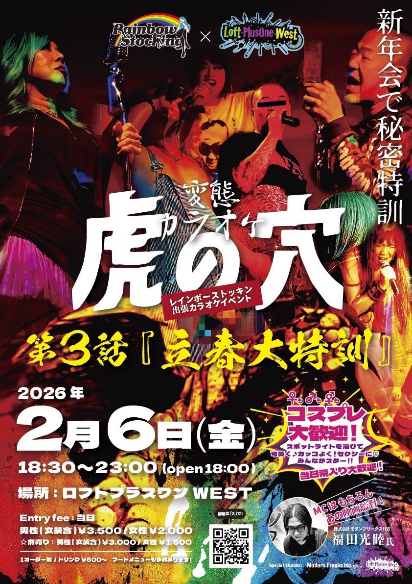 前売:男性(女装含む)¥3,000/女性¥1,500(¥6001ドリンク必須)