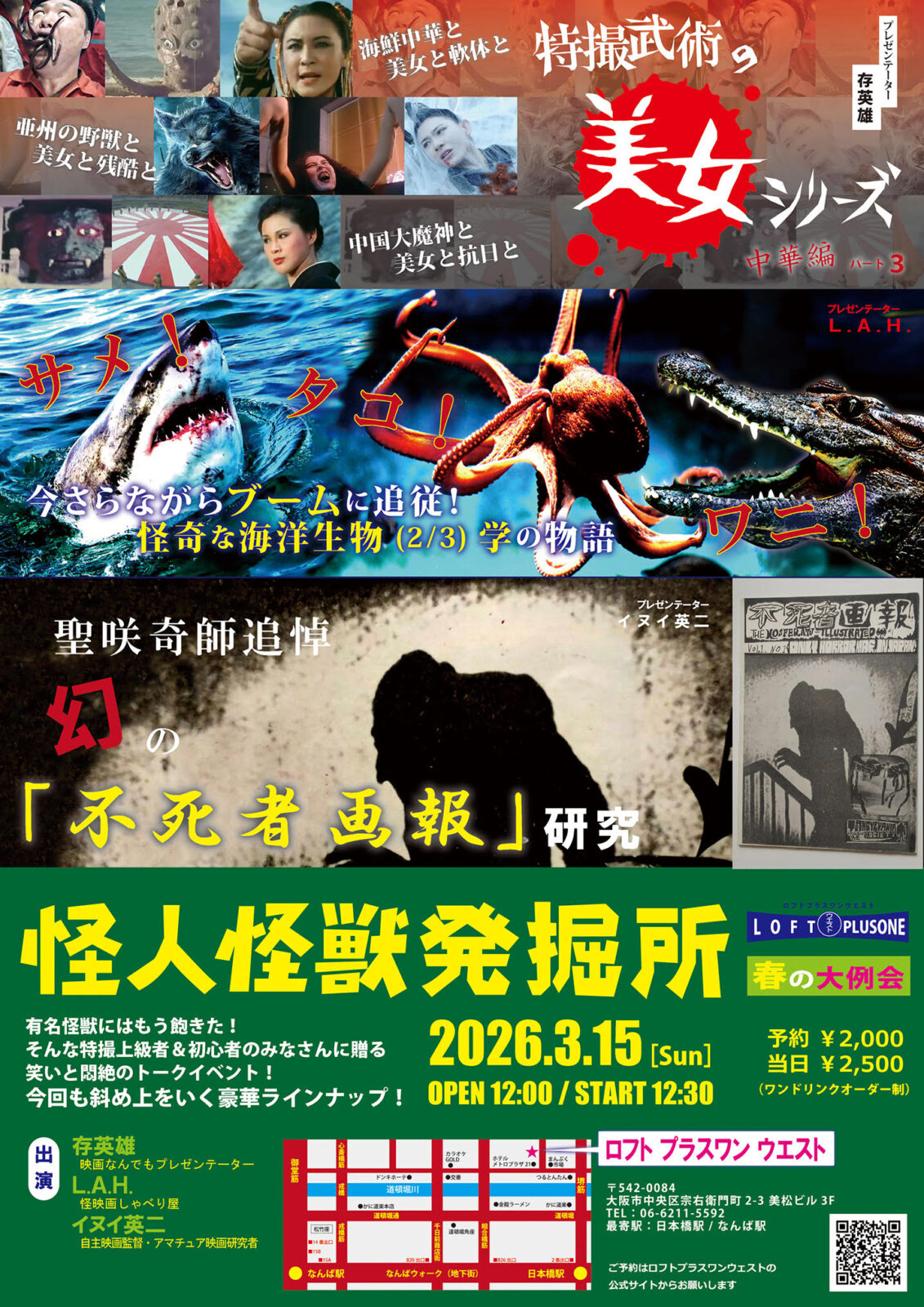 今回も「存英雄のアジアの特撮シリーズ」「ブームに乗り遅れたL.A.H.のサメ!タコ!ワニ!」「自称実相寺昭雄研究家のイヌイ英二が再び特撮ゴッド聖咲奇さん追悼」と節操無しの狂ったトークイベント!!