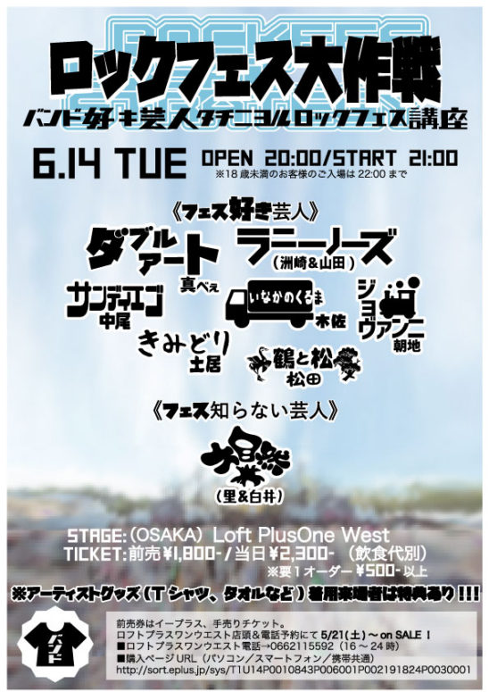 前売券はイープラス、手売りチケット。ロフトプラスワンウエスト店頭&電話予約にて5/21(土)~発売開始!