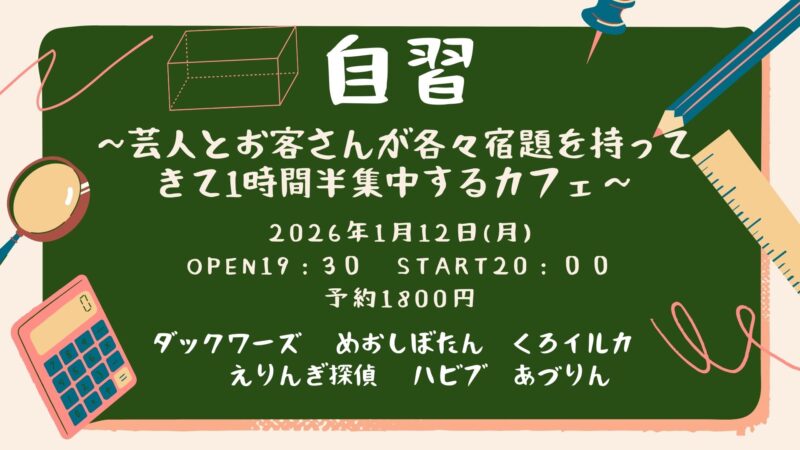 自習〜芸人とお客さんが各々宿題を持ってきて1時間半集中するカフェ〜
