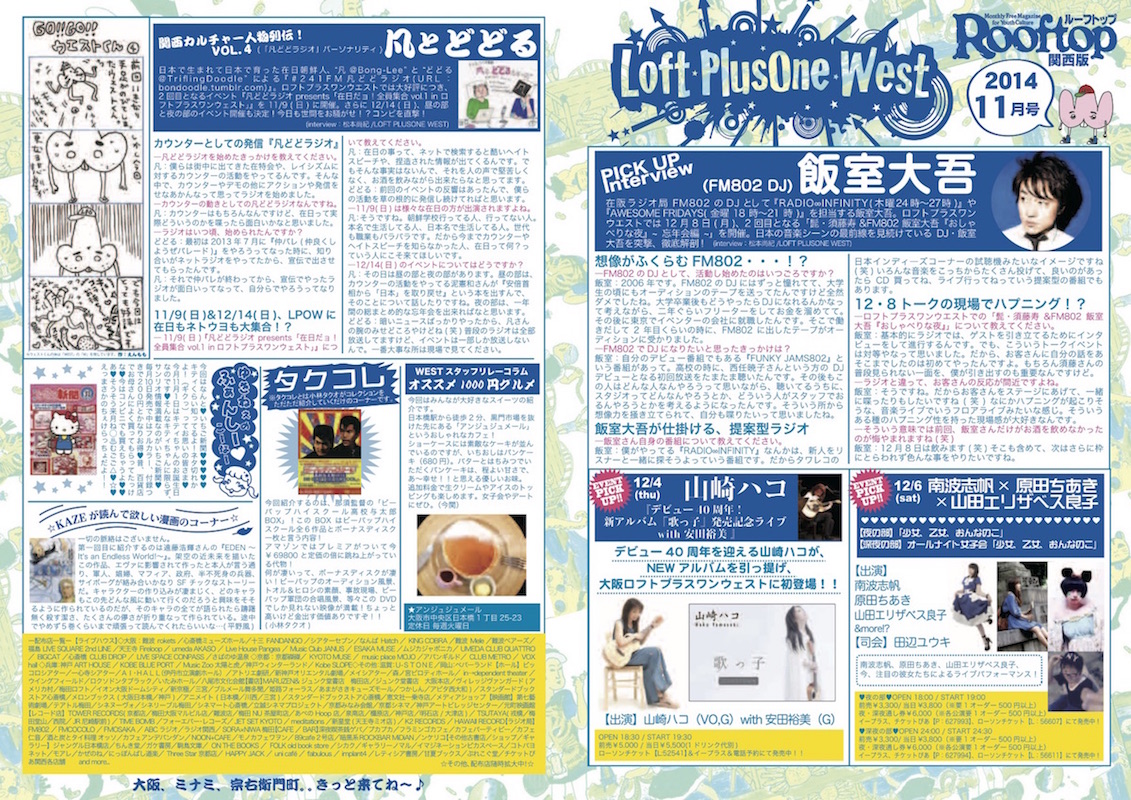 関西地方を中心にゲリラ的に配布中のRooftop関西版。このほど無事11月号(Vol.4)も発行でき、なんとか3号雑誌になることだけは避けることができましたw